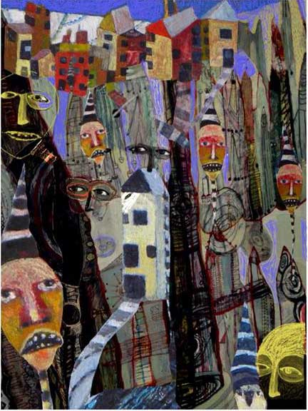 This is an old painting from early 1990. My mother was an avid bird watcher. During my teenage years she used to horrify me by standing in our suburban back yard while making what I considered a thoroughly insane cacophony of tweeting and chirping sounds. Little did I know that as a mother and older woman I am inclined to behave in the very same manner when outdoors. I pay no attention to what embarrassment and misery my own two teenage girls might be experiencing.
