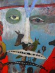 oil paint, beeswax, stones, on wood