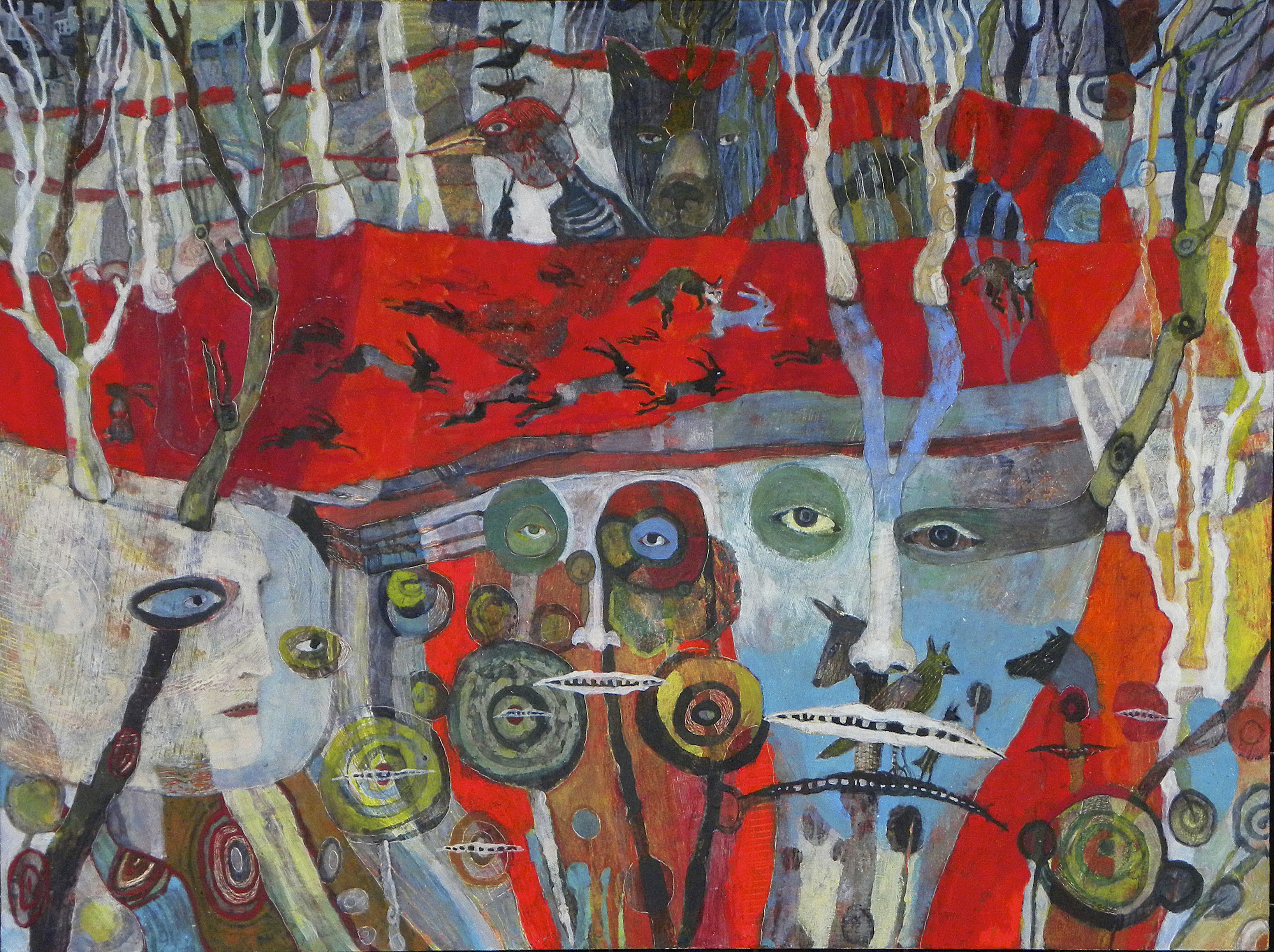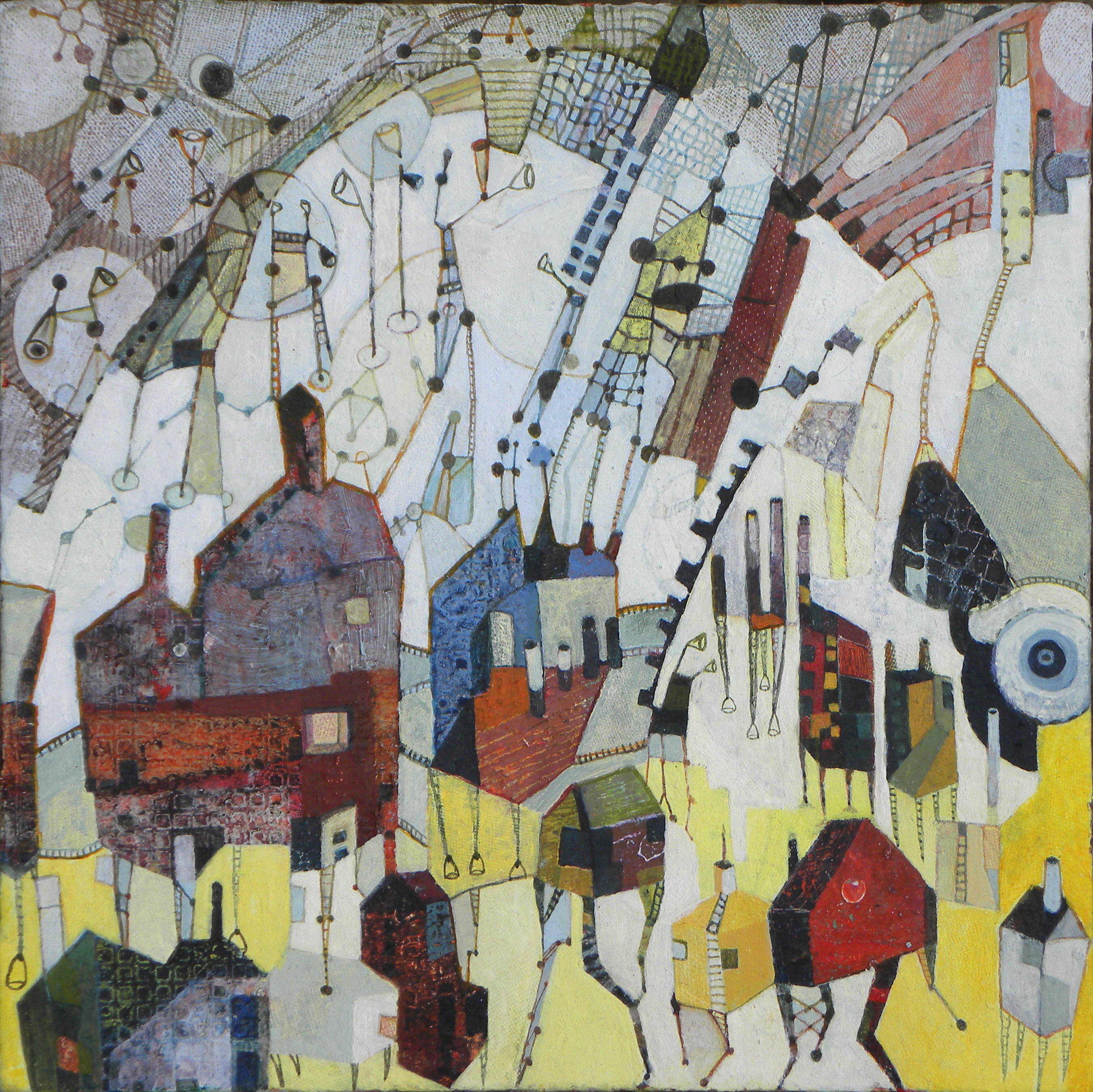Oil paint, oil stick, cold wax, ink, art stix, on Ampersand claybord